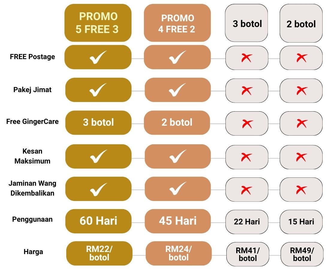 Untuk pakej RM169, kos anda hanya RM24.10 sebotol.